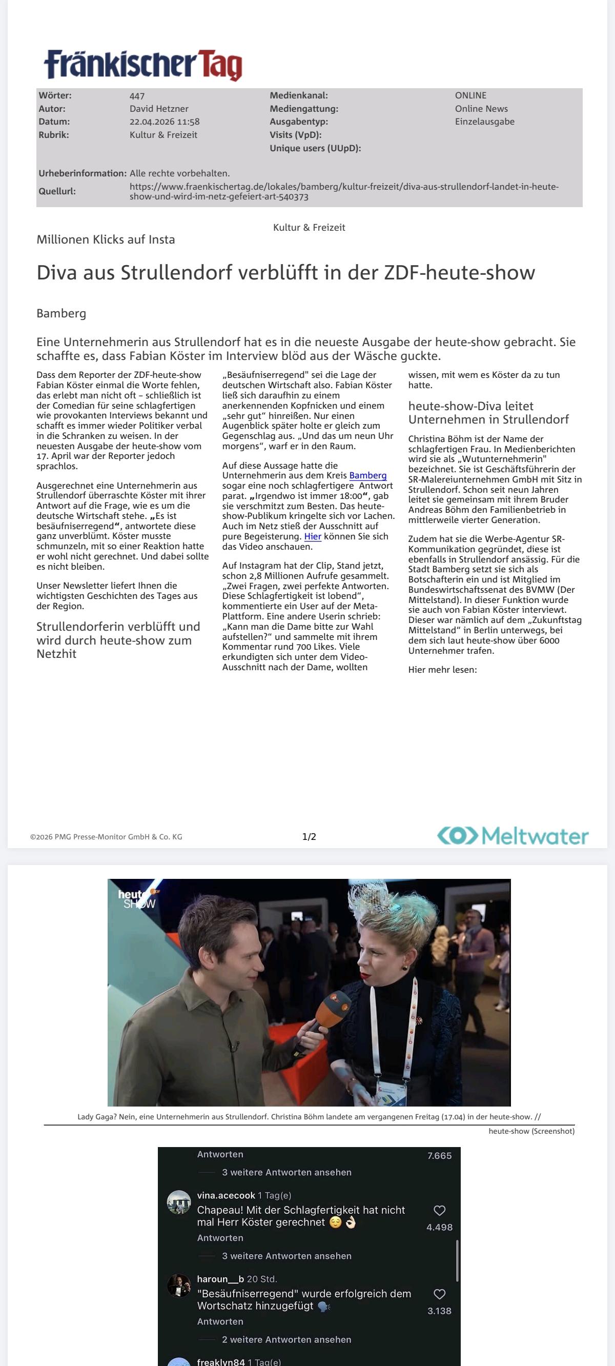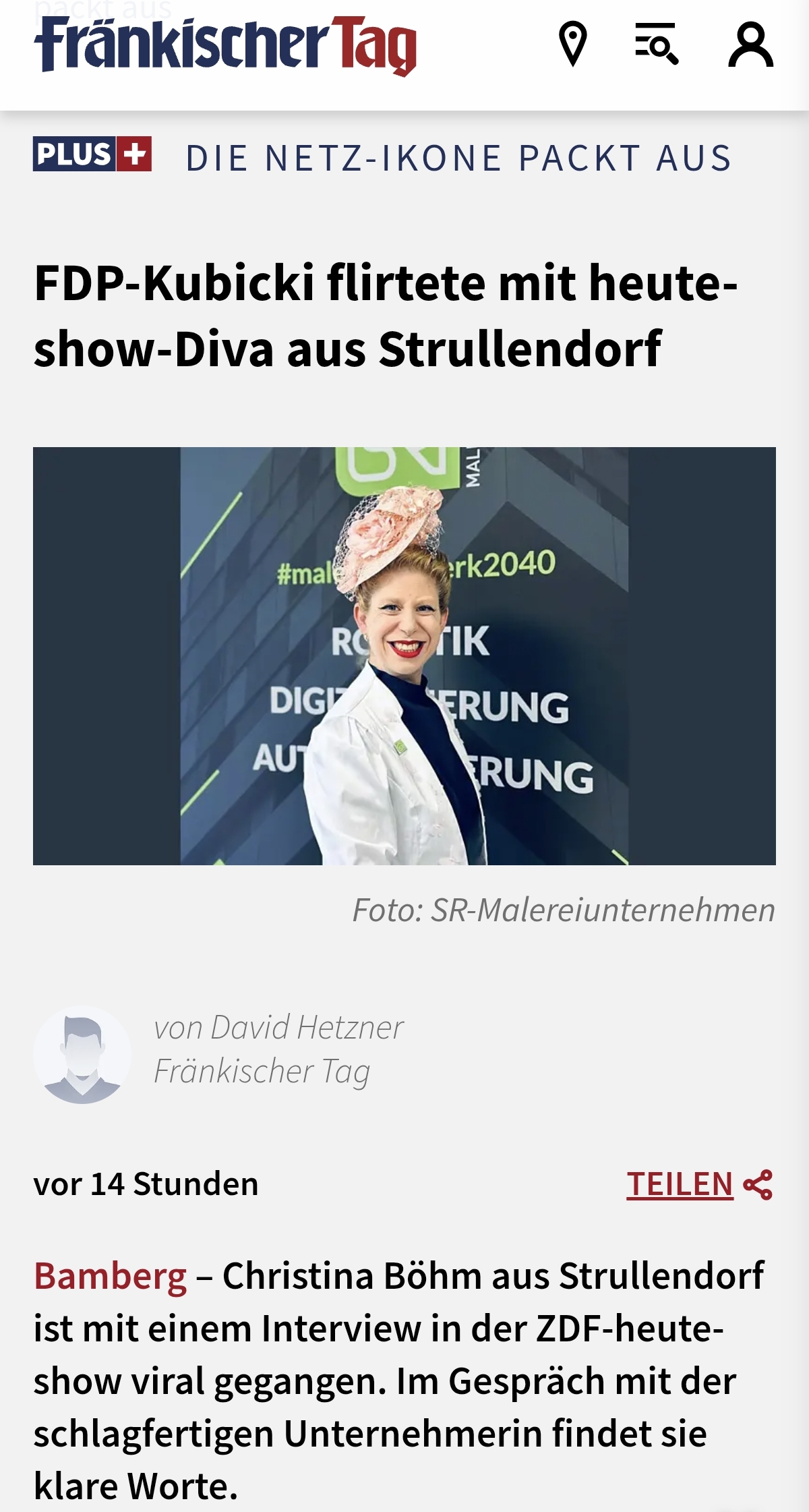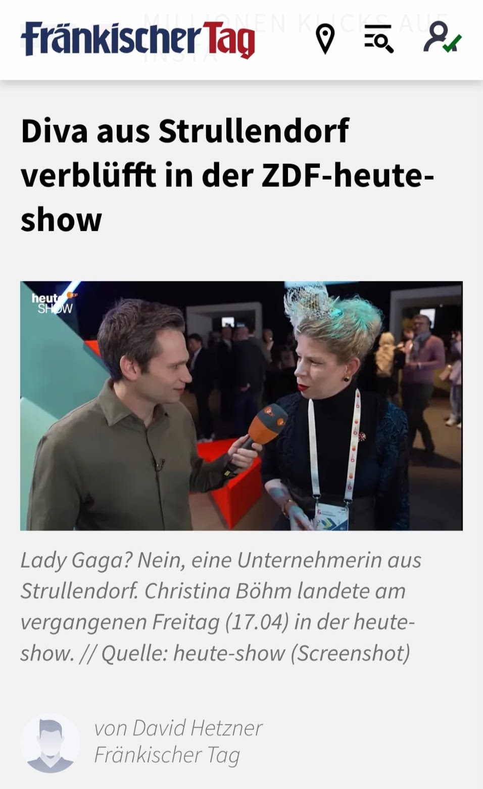 Charmanter Beitrag des Fränkischer Tag zum Auftritt von Christina in der Heute Show.